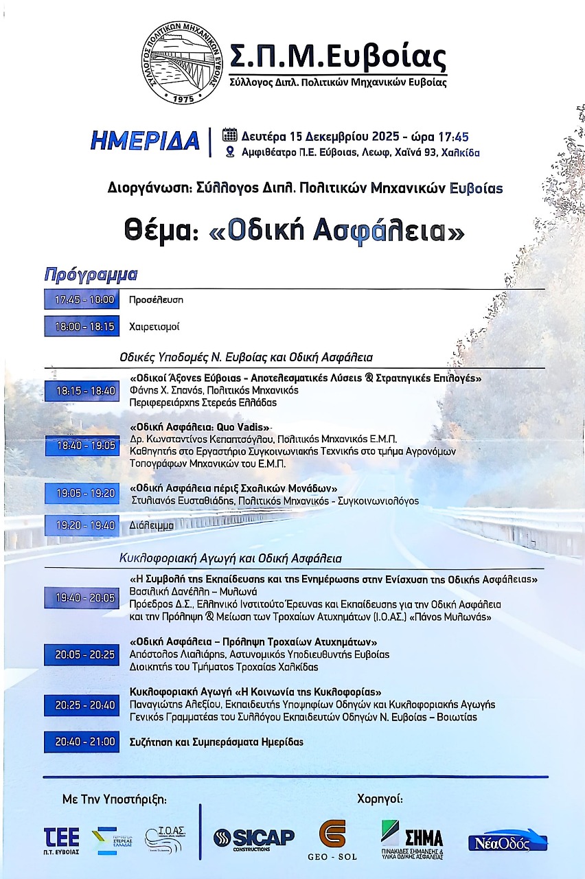 Συμμετοχή στην Ημερίδα που διοργάνωσε ο Σύλλογος Διπλ. Πολιτικών Μηχανικών ,με θέμα την Οδική Ασφάλεια